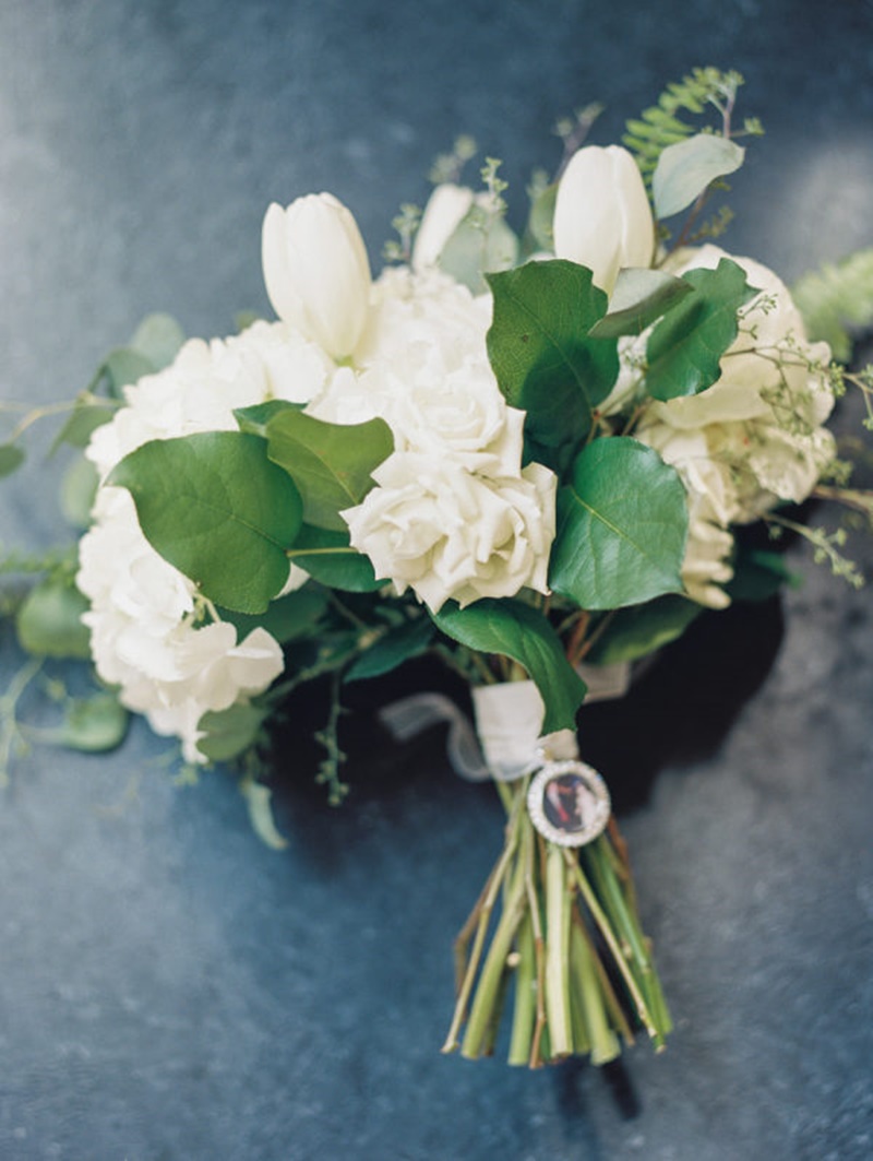 Um relicário com a foto do ente querido preso ao buquê é discreto e emocionante. Essa solução fica especialmente bonita em cerimônias ao ar livre e em fotos com close do buquê. Veja mais sobre buquês em nosso conteúdo sobre buquê de noiva.