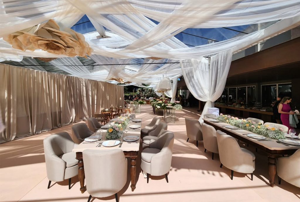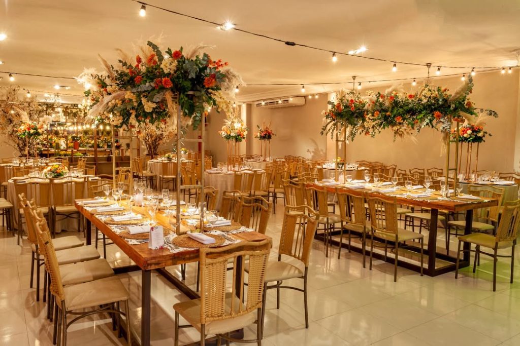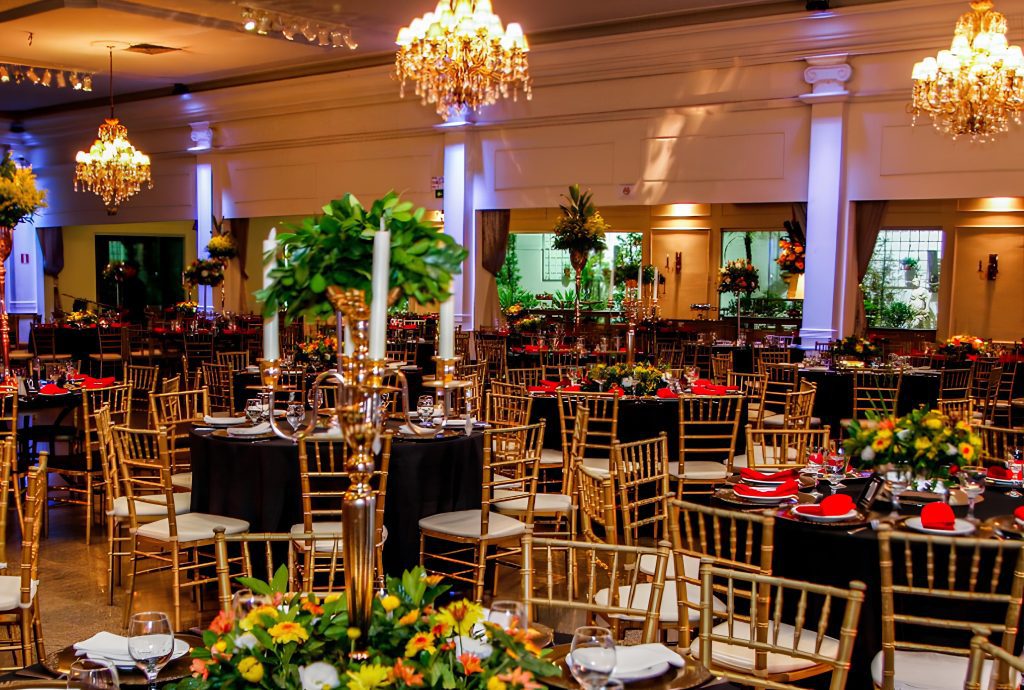 Espaço com capacidade para 850 convidados em três ambientes totalmente climatizados, estrutura de mesas e cadeiras, lustres luxuosos, acessibilidade para pessoas com mobilidade reduzida e gerador próprio.