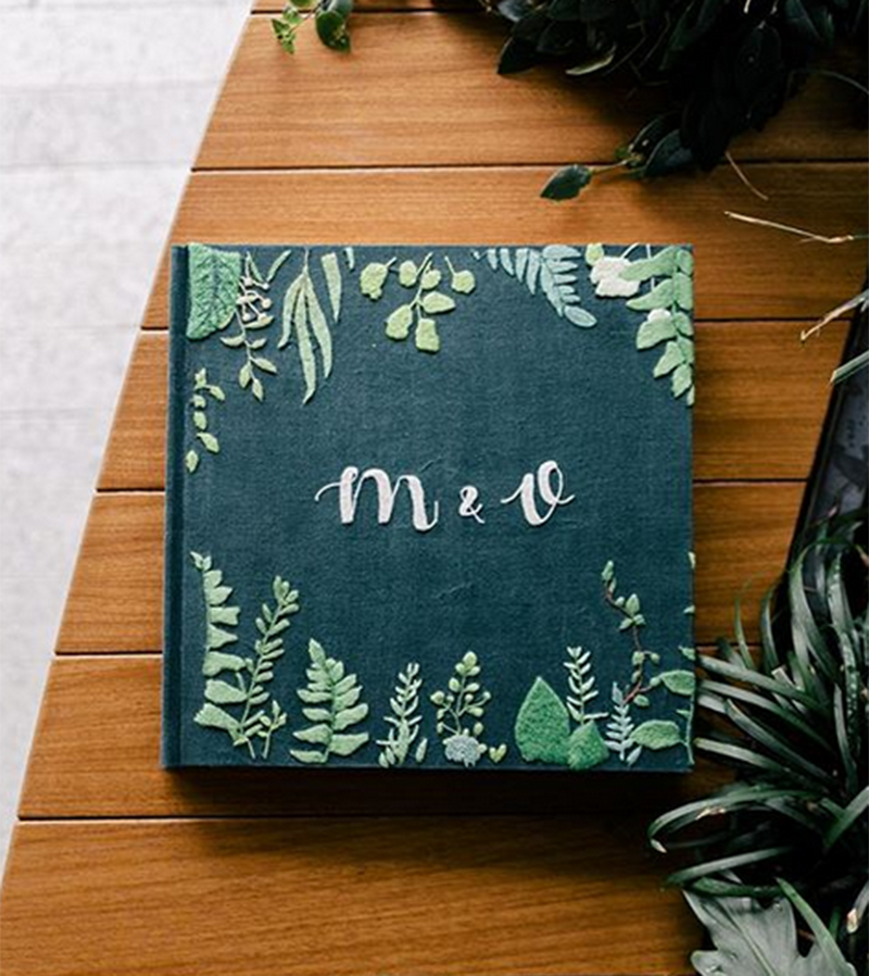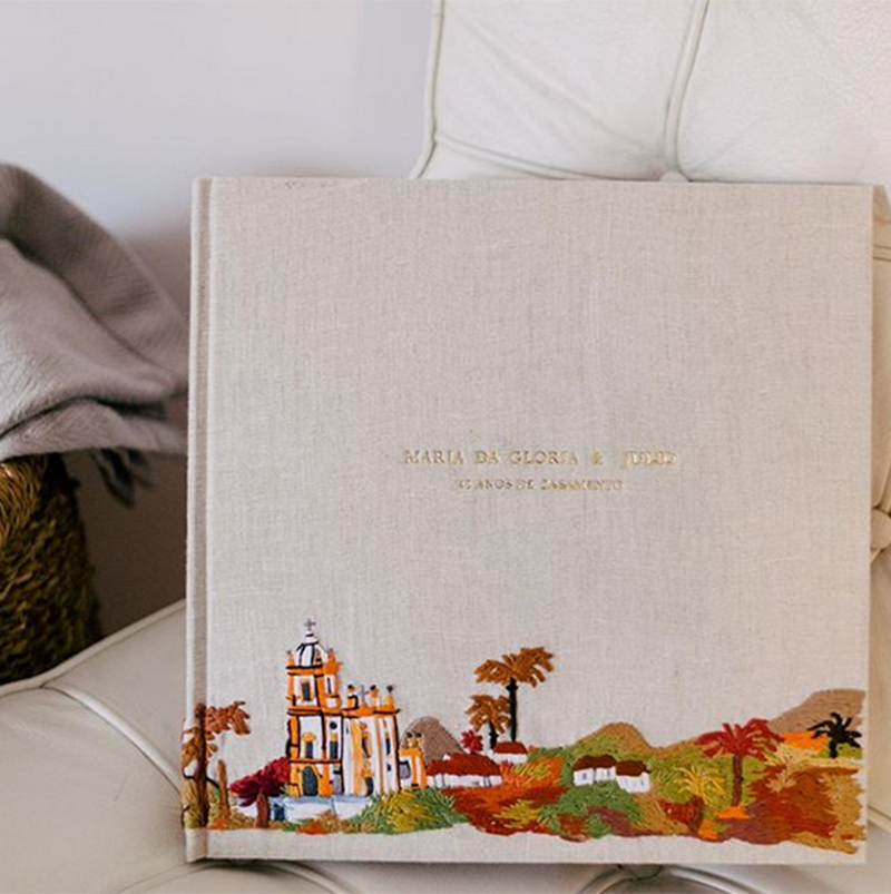 Os noivos também podem optar por itens como bordados com desenhos na capa, aquarela, caligrafia nas folhas internas ou mosaicos.