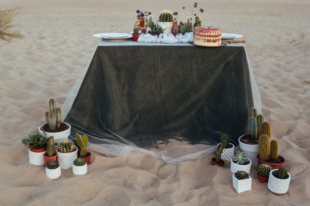 Independentemente do estilo, é possível adaptar os cactos ao projeto visual do evento. Inclusive, muitos decoradores indicam combiná-los com itens de iluminação criativa. Dessa forma, surgem cenários fotogênicos para o ensaio pré-wedding e para o álbum de fotos.