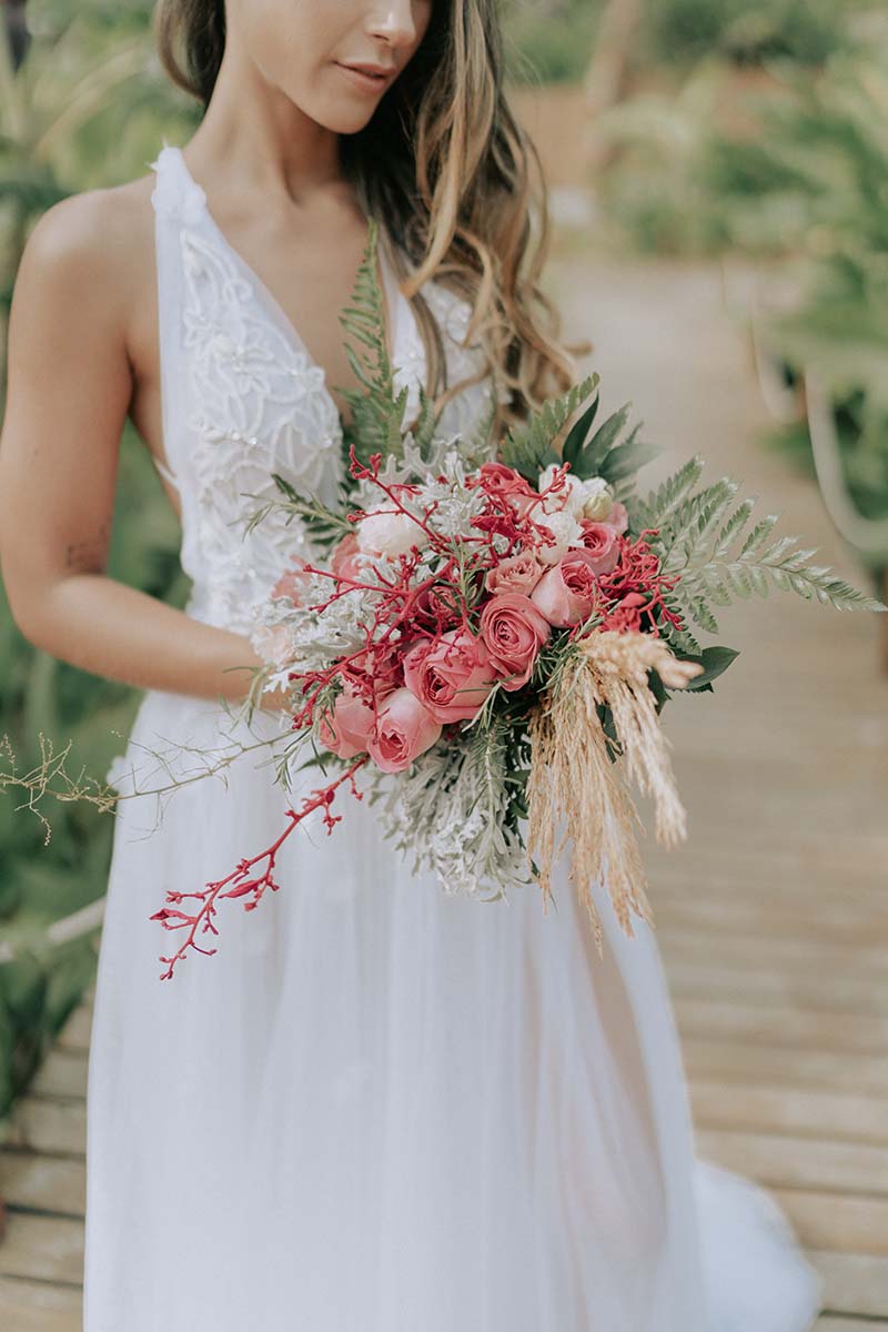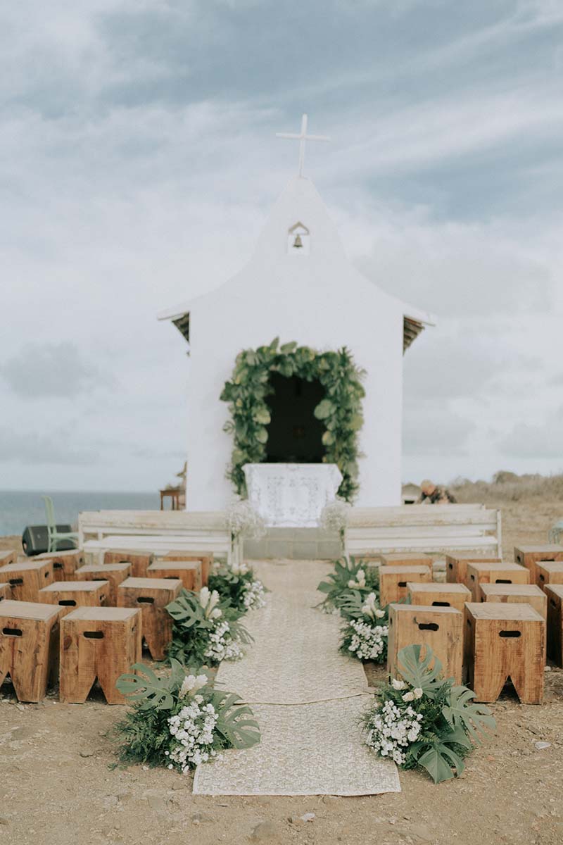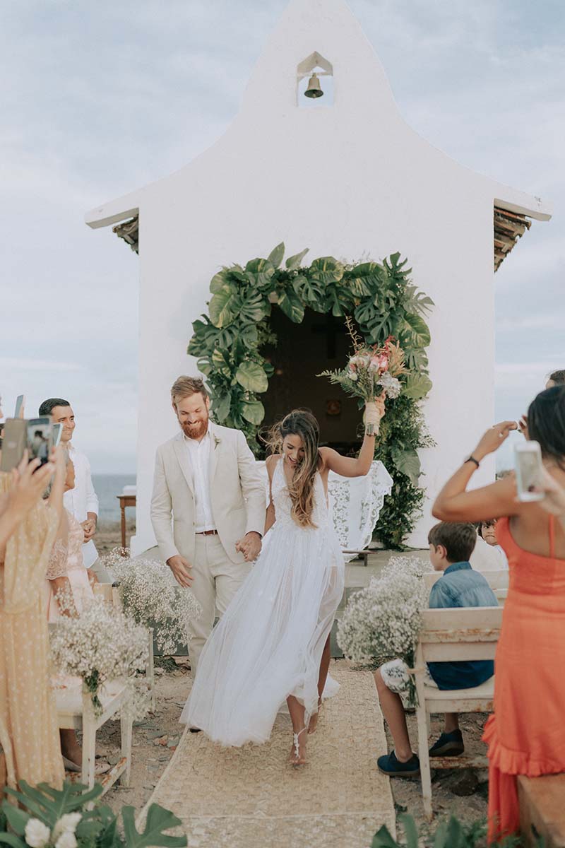 A cerimônia aconteceu em frente à Capela São Pedro dos Pescadores. “Não é que esse sonho se tornou realidade?”, brincou a noiva. A decoração feita com costelas de Adão deu um tom rústico e sofisticado para o casamento.