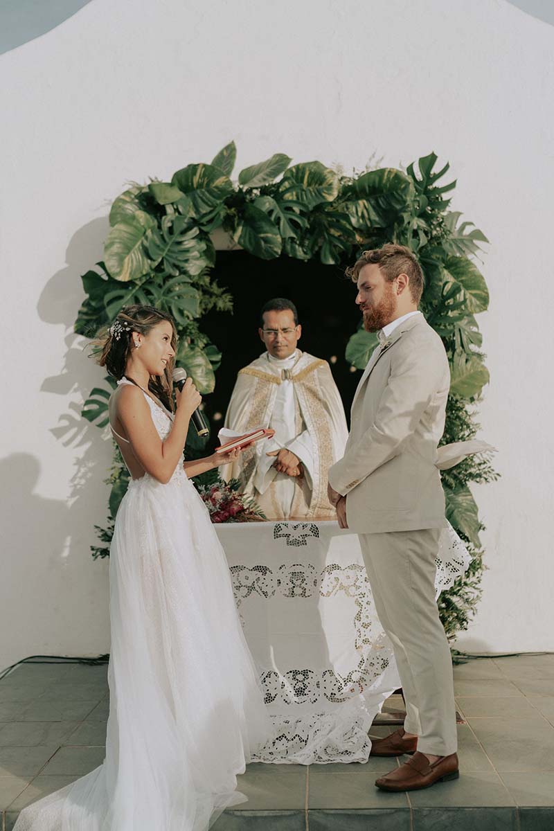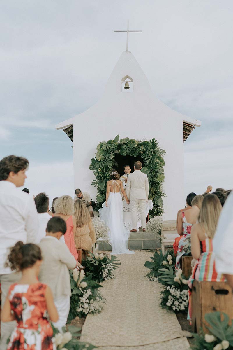 Quando começaram a namorar, Guilherme e Carla viajaram juntos para Fernando de Noronha e ficaram imaginando o quanto seria lindo um casamento na Capela São Pedro dos Pescadores. Anos mais tarde, quando começaram a pensar no Grande Dia, o casal decidiu que Noronha seria o cenário ideal para a união.