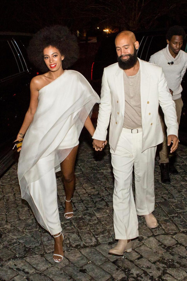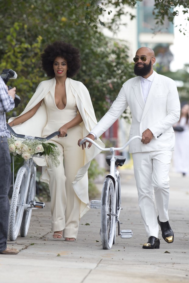 No último domingo a cantora Solange Knowles se casou com o diretor Alan Ferguson com uma cerimônia nada tradicional em Nova Orleans, Estados Unidos. Todos os convidados estavam com cores claras, e o vestido da noiva mudou da cerimônia para a festa. Na cerimônia, Solange usou um modelo Humberto Leon para Kenzo. Eles chegaram para a cerimônia de bicicleta, a noiva de macacão Stéphane Rolland com capa e o noivo com terno branco Lanvin.
