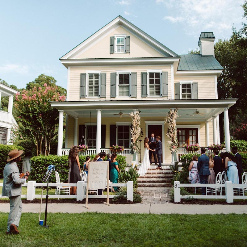 Em uma boa festa, a música não pode faltar. Para um casamento civil em casa, Luciana recomenda somente música ambiente, sem pista de dança. Bruna relata que uma de suas noivas optou por contratar um músico que toca violino. Além do mais, se o juiz de paz for até a casa, é bom verificar se há alguma exigência específica do profissional com relação ao número máximo de convidados ou outros protocolos.