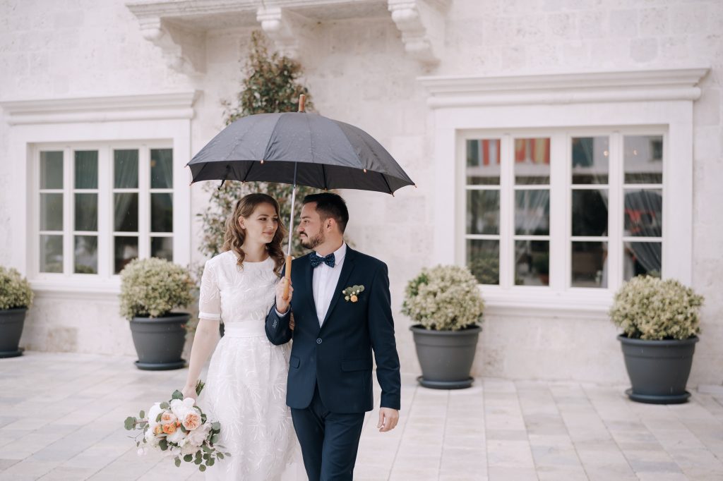 “Vou casar num dia de chuva, talvez fiquemos molhados, mas essa foi nossa decisão”. Então nada de ficar angustiada. Imagine as cenas inesquecíveis: o celebrante e os noivos de chapéus e todos os convidados também.