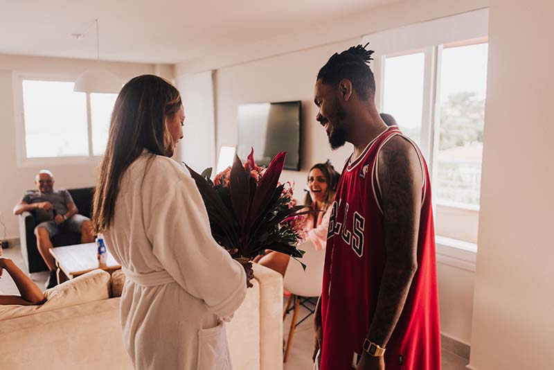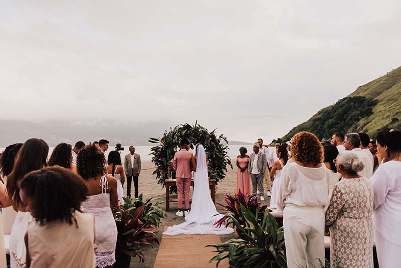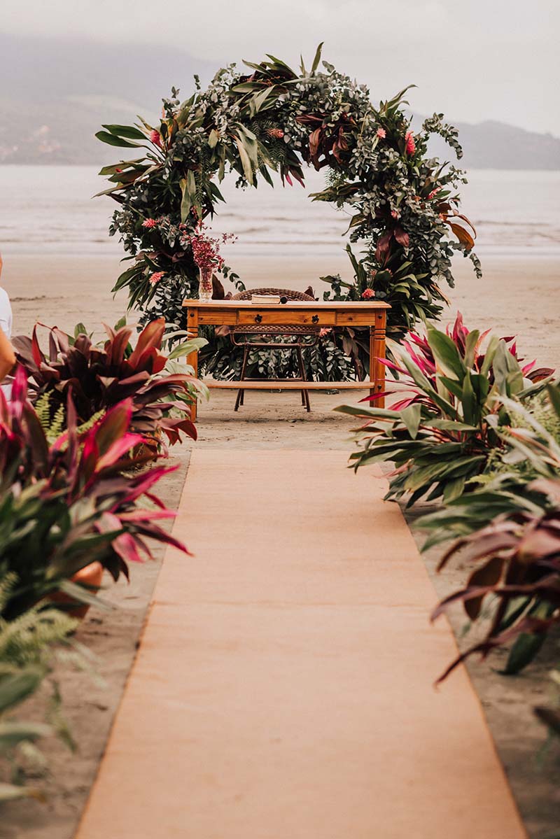 Eles começaram a procurar locais para o casamento pela internet e o primeiro que visitaram na praia fecharam no mesmo dia. Com o espaço fechado a noiva tinha a preocupação de encontrar uma assessora que pudesse ajudá-la com tudo que ainda faltava.