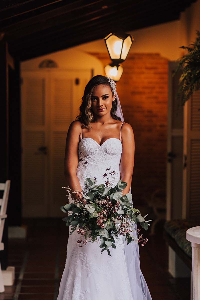 Evelyn é uma mulher bem objetiva e na escolha do vestido de noiva não foi diferente. Ela foi em dois lugares na busca por um vestido sereia pelo qual ela se apaixonasse. Ela não precisou experimentar outras opções para saber que era esse o estilo do seu vestido ideal.