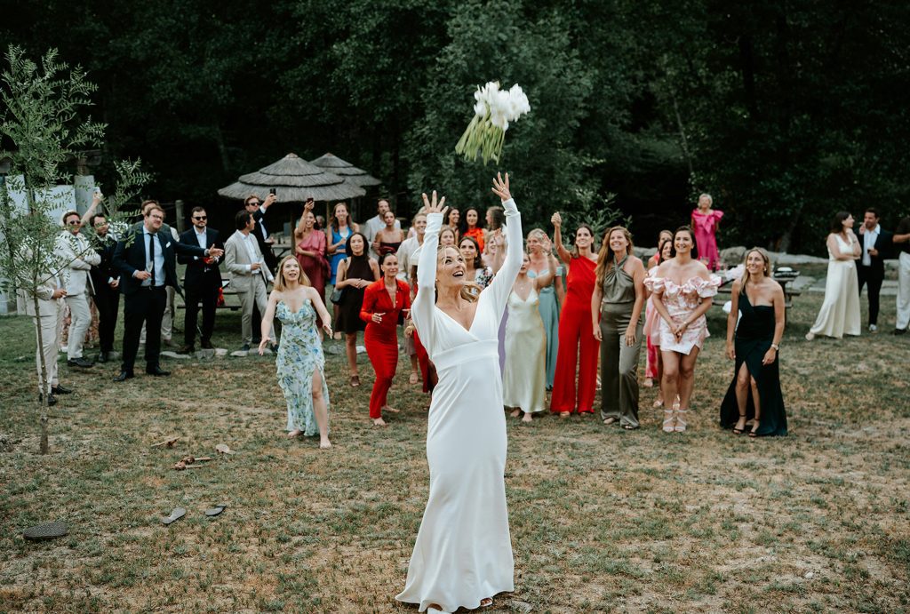 A noiva deve considerar o terreno: caldas muito longas podem sujar ou prender na grama. Já os sapatos devem oferecer firmeza. Confira nosso guia de vestido de noiva para casamento no campo.
