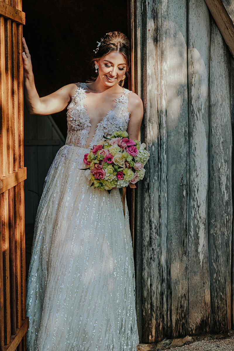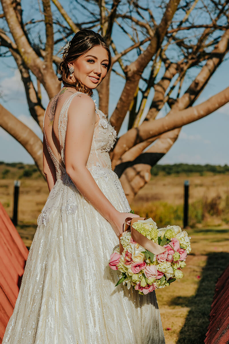 Depois de tantos adiamentos e mudanças de planos, o casamento real ao ar livre Rayanna e Manoel finalmente aconteceu. A cerimônia foi realizada em uma fazenda a 60 km da cidade, cercada por natureza e com um pôr do sol de tirar o fôlego. “Minha mãe foi quem tornou tudo possível. Ela encontrou o local, organizou os detalhes e até conseguiu o espaço como presente dos donos. Foi um milagre!”, lembra Rayanna.