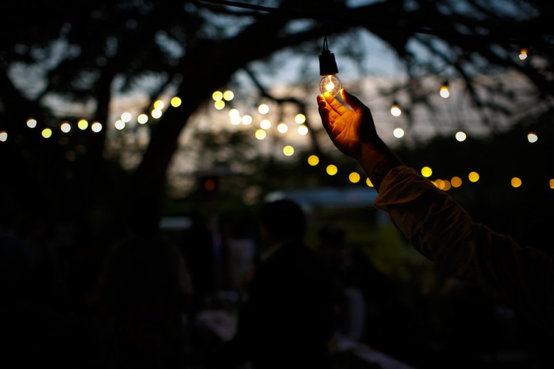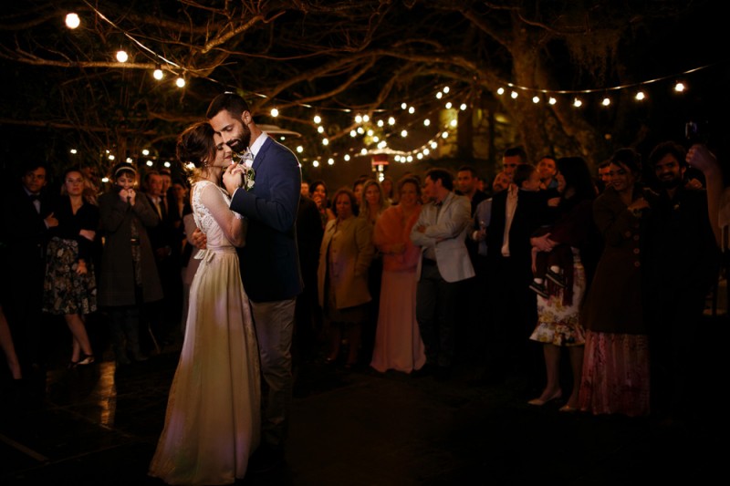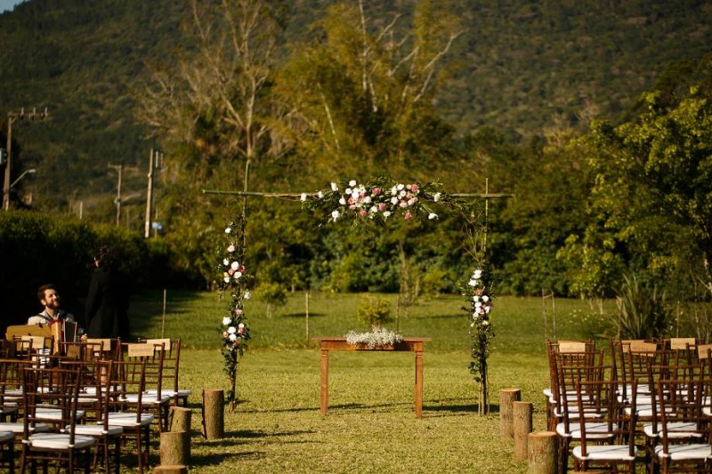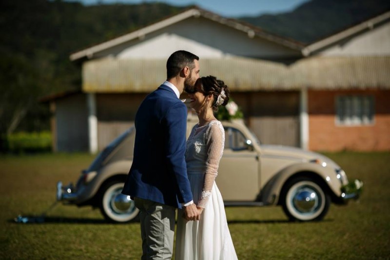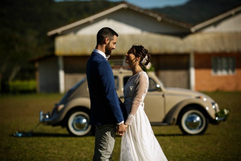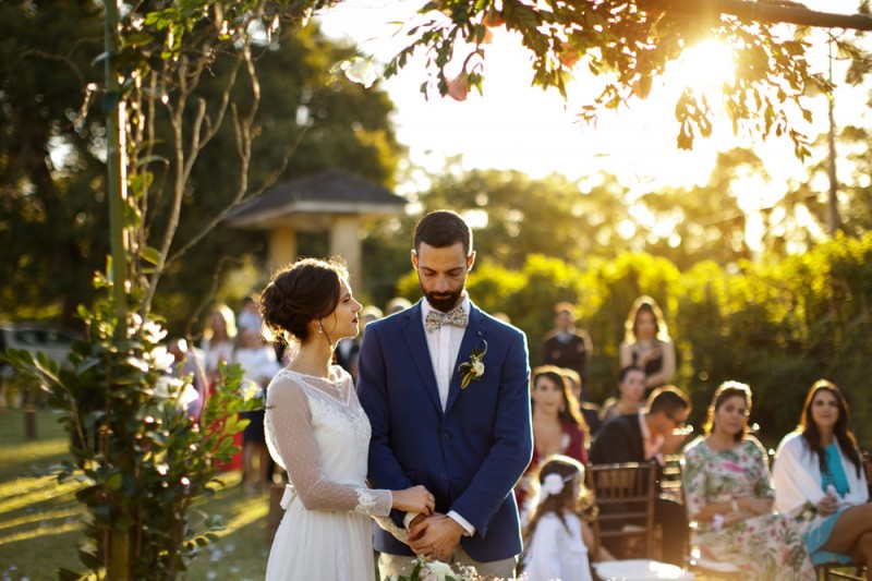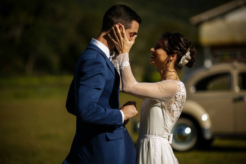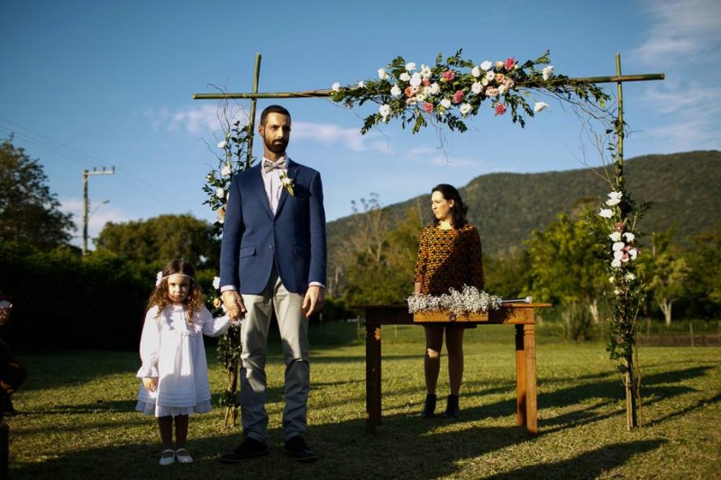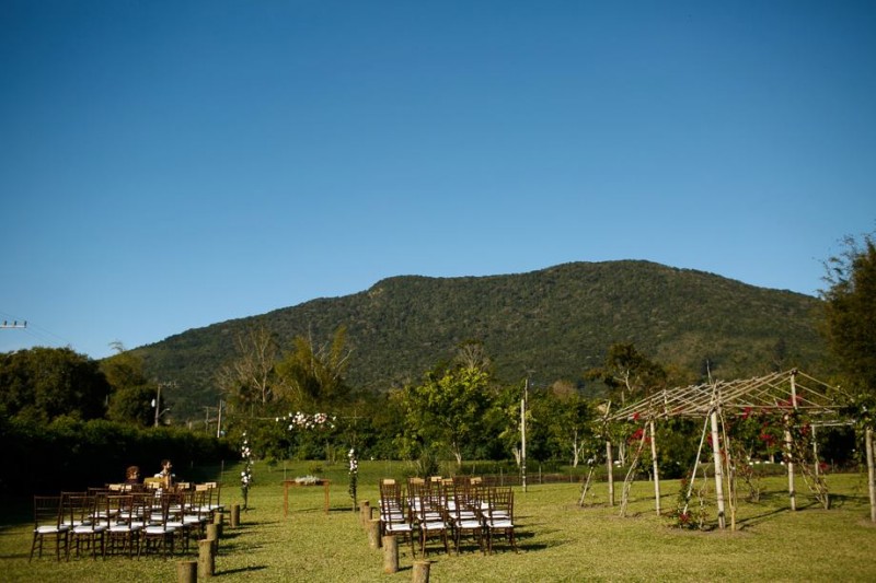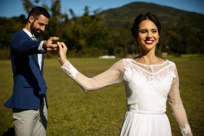 Pensou em Florianópolis e em um lindo casamento na praia? Não foi nada disso que o casal de fotógrafos Thiago Floriani e Melina Floriani fizeram. Algo diferenciado – eles optaram por um casamento ao ar livre, com direito a food truck e luzinhas super charmosas (feitas por eles mesmos) para decorar a festa. Tudo foi realizado em meio às árvores em um lugar com muito verde.