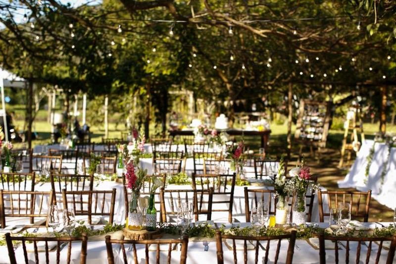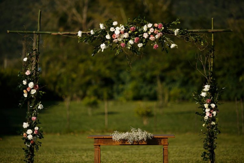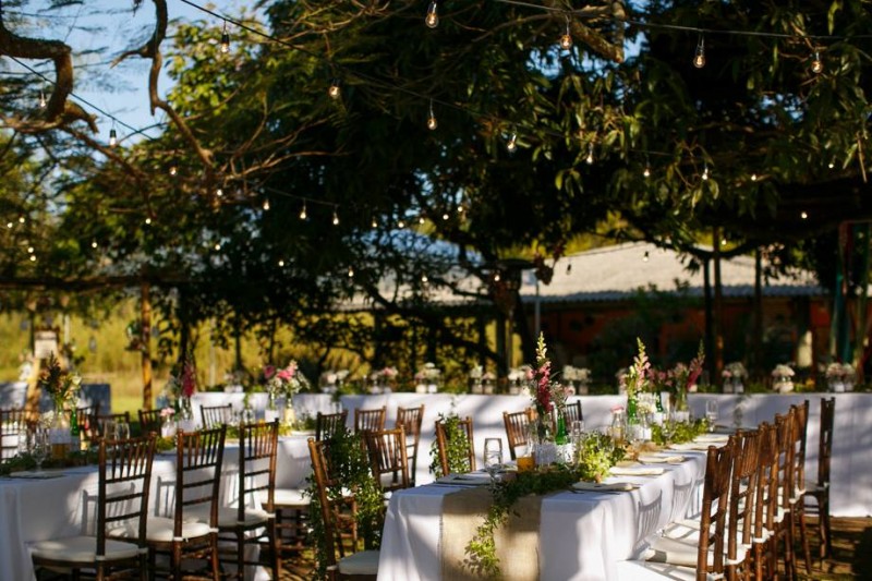A ideia inicial era fazer uma festa pequena com poucos convidados. “Mas como essa questão de lista de convidados é sempre muito difícil, resultou num total de 90 pessoas. Começamos decidindo o local e depois fomos atrás dos fornecedores. Alguns deles já faziam parte da nossa vida, como por exemplo a Luciana Floriano e o Fabio Grasso (pessoal da alimentação). Outros faremos questão que não saiam nunca mais”, pontua. Segundo Melina, o casal sempre sonhou com um casamento todo ao ar livre e tiveram sorte, pois fez um dia lindo.