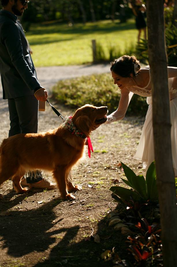 O casal também procurou colocar vários toques pessoais no casamento. “Todos os fornecedores foram incríveis, entenderam o clima da festa e conseguiram concretizar todos os detalhes de forma sensacional. A cerimônia foi realizada pela nossa amiga Junia, e a música da cerimônia foi tocada pelo nosso amigo Marcel, marido da Junia, que tocou lindas músicas com o seu acordeon. A nossa cachorrinha levou as alianças, as nossas afilhadas também participaram. Fizemos troca de votos e alguns familiares participaram da cerimônia’, conclui Melina.