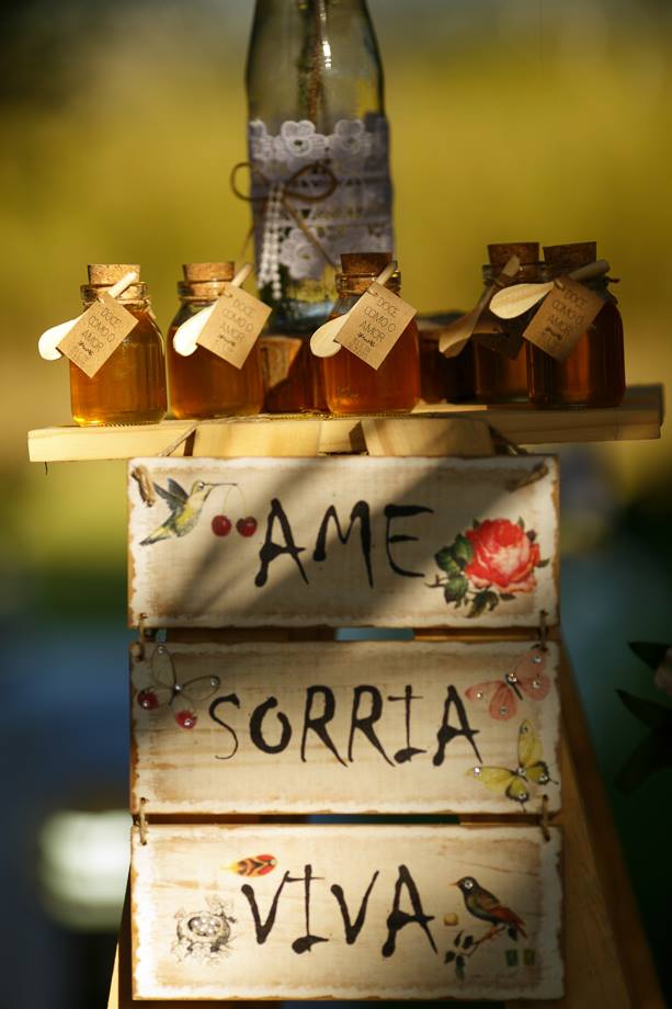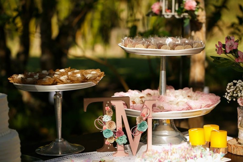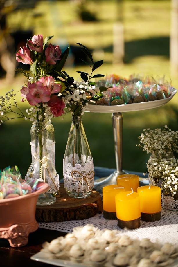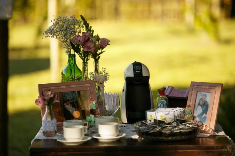 Uma coisa que eles tinham como certa é que eles mesmos se encarregariam de todos os detalhes e também fariam a decoração. “Na nossa cabeça, já tínhamos tudo pronto, até que decidimos transformar esse sonho em realidade e iniciamos os preparativos no início de 2015. A decoração nós mesmos que fizemos, com a ajuda da minha mãe, que se dedicou em tempo integral produzindo a maior parte das belezuras que podem ver nas fotos. O Thiago produziu orgulhosamente suas luzinhas, que deram um charme especial para a noite e fizeram muito sucesso! ”, destaca Melina.