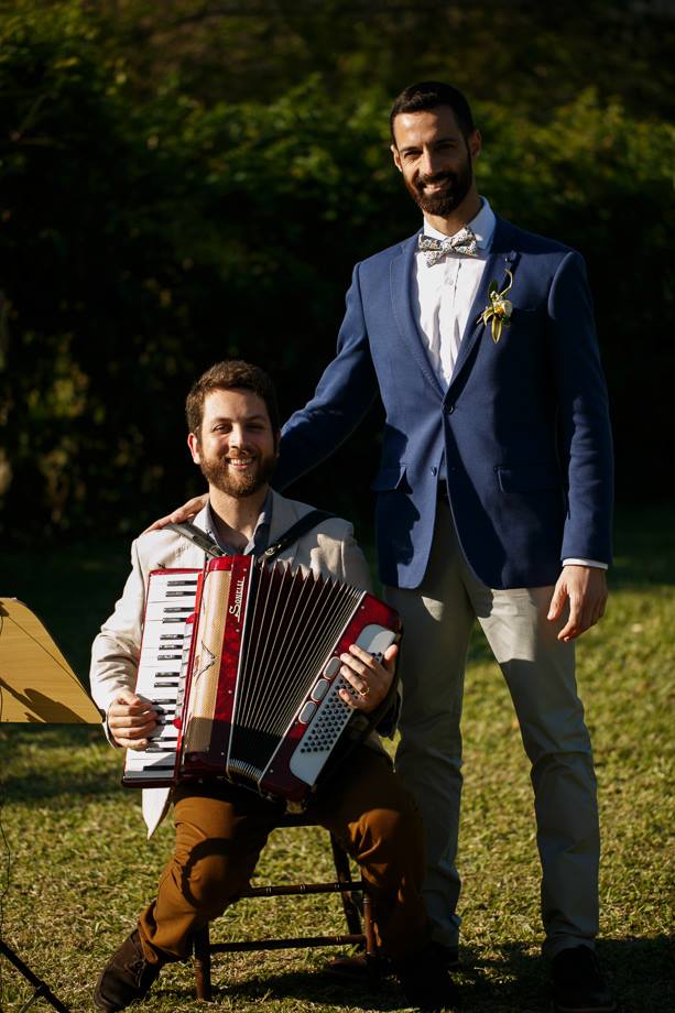 Outro momento emocionante do casamento foi quando o Thiago cantou para a Melina a música “Meu Amor É Teu”, de Marcelo Camelo. “Ele cantou e tocou violão e o nosso amigo acompanhou com o acordeon”, lembra Melina.