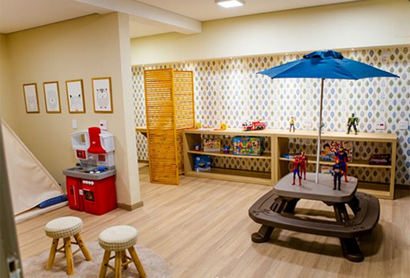 Lá os pequenos encontram vários brinquedos, super-heróis, mini cozinha, barbies, videogame e monitores para cuidar de toda turminha enquanto seus convidados aproveitam a festa.