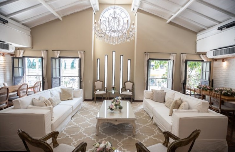 A casa conta com um salão principal e um mezanino. Neste salão, normalmente são realizadas as cerimônias de casamento sob um lindo lustre de cristal e uma estrutura de ferro desenhada sob medida.