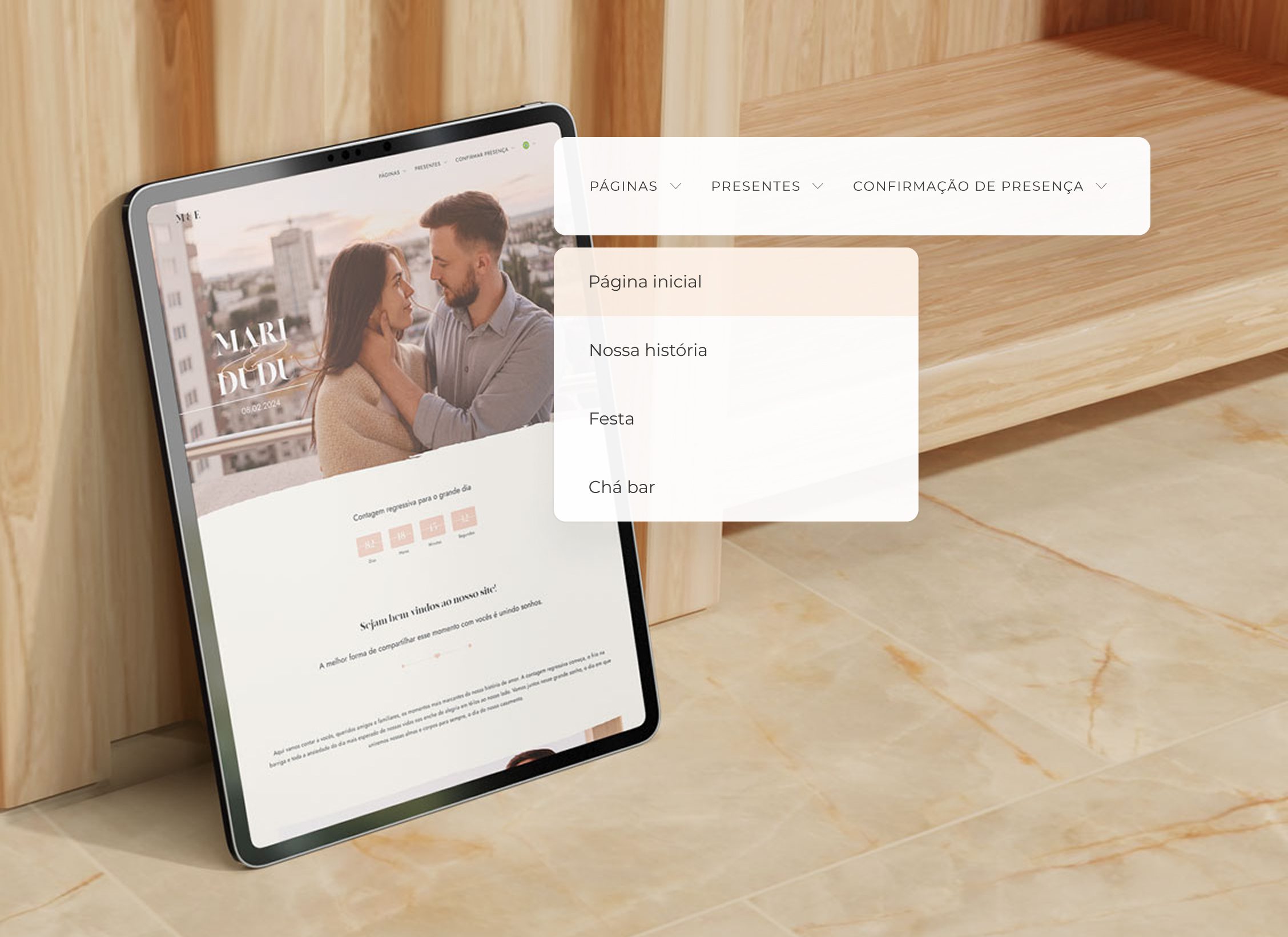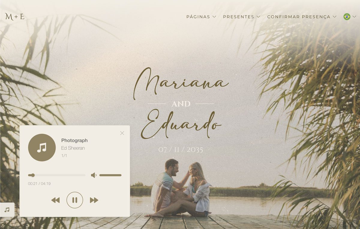 É ou não é uma ótima forma de recepcionar os seus convidados no seu site de casamento? Além disso, é possível alterar a introdução animada sempre que der vontade — nosso time de criação está sempre trazendo novidades.