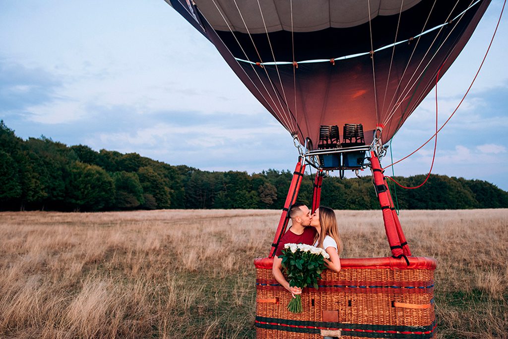 Leve o seu namorado para fazer um passeio de balão ao amanhecer ou ao entardecer. Faça o pedido quando estiverem sobrevoando uma paisagem bonita e aproveitem a vista juntos.