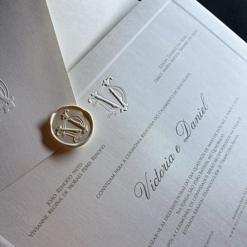 Segundo Luana, as noivas gostam muito dos acabamentos metálicos nos nomes do casal e também no monograma dos noivos. “Isso traz um toque mais sofisticado ao convite”, comenta.