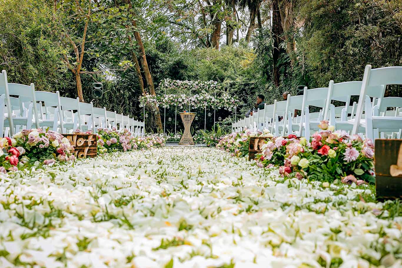 Estamos partindo do pressuposto que o casamento está com data definida. Com ela, você pode definir o local da cerimônia: se o casamento será no verão, vocês preferem um cerimonial aberto? Um destination weddingna praia?