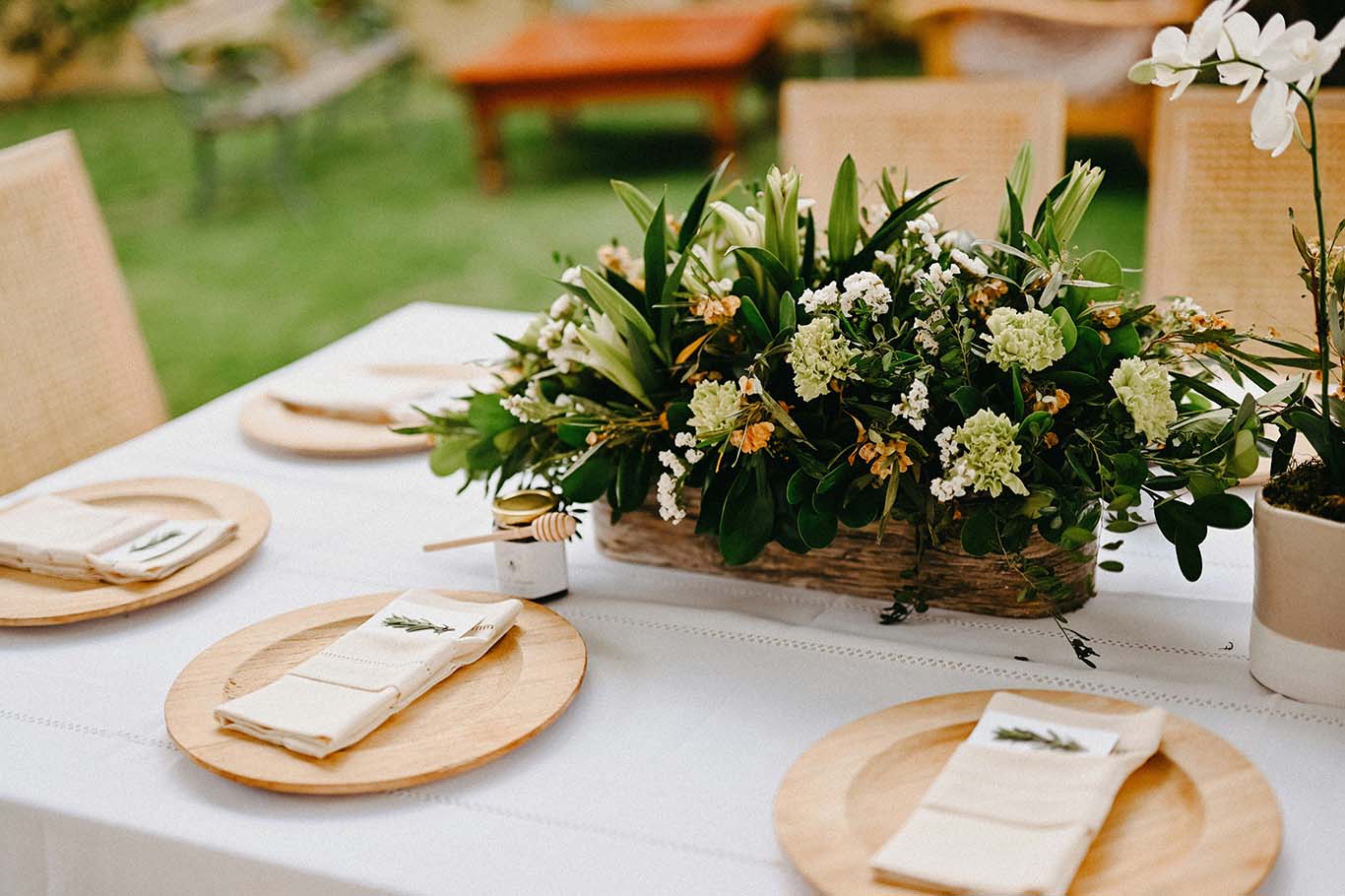 Ideal para ambientes ao ar livre, utiliza vime, juta, flores silvestres e madeira rústica. Tons terrosos, tapetes e lanternas criam um clima acolhedor e descontraído.