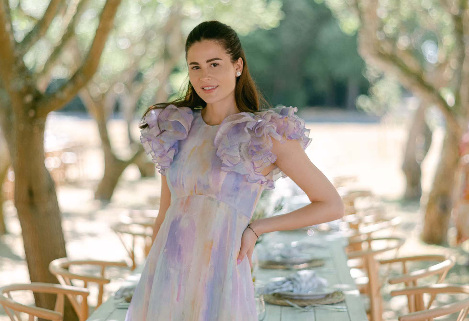 Outro ponto importante é o local da festa. Um evento na praia ou no campo pede tecidos fluidos. Por outro lado, casamentos em salões elegantes costumam exigir trajes mais estruturados.