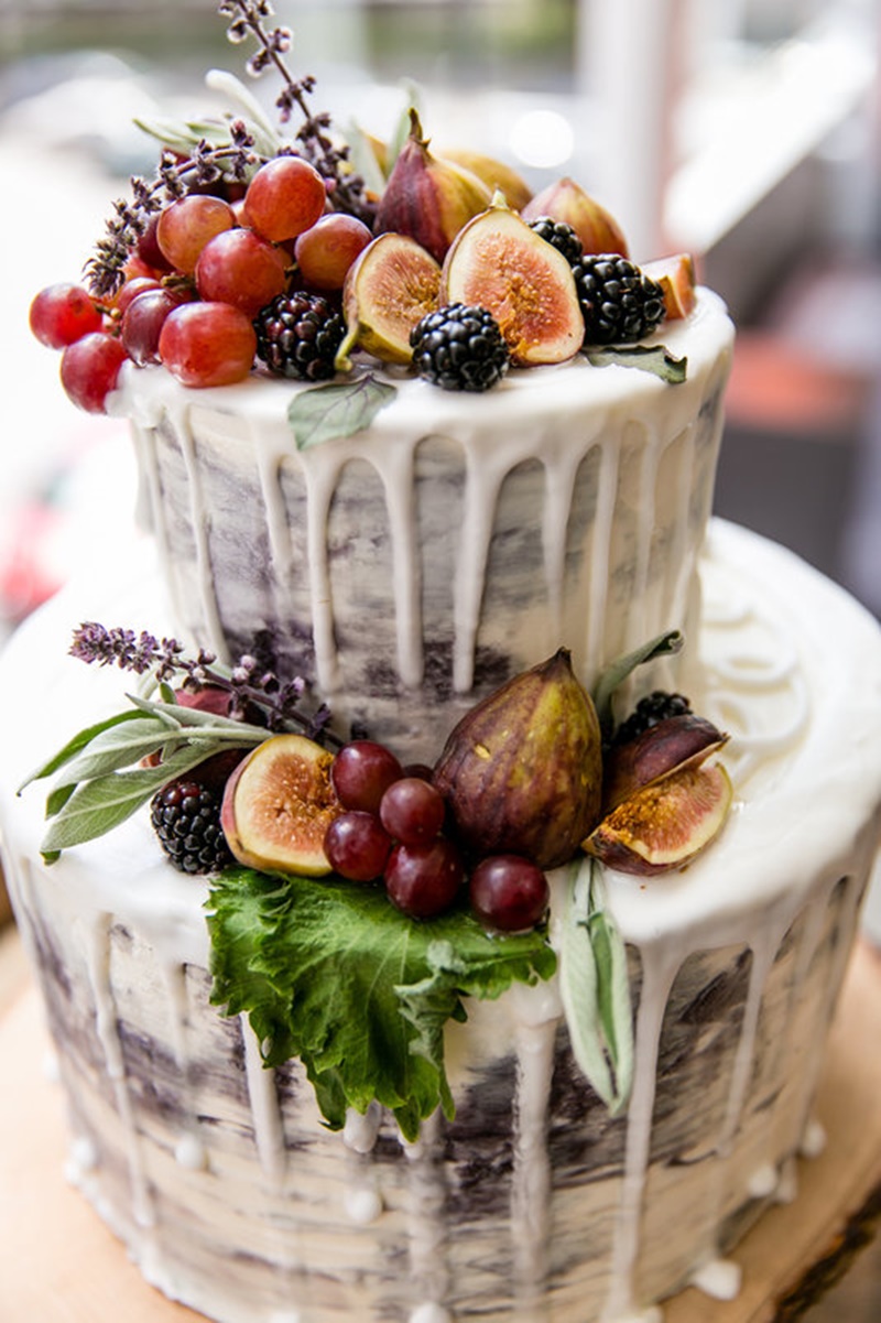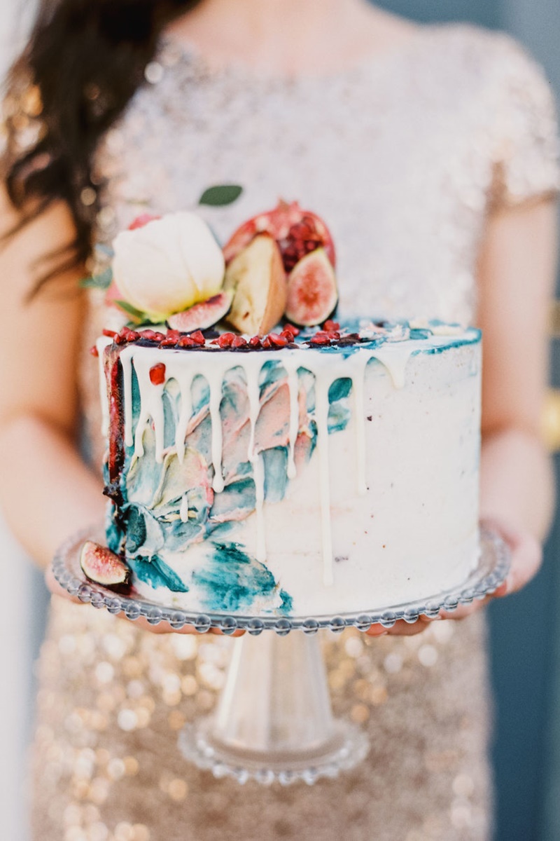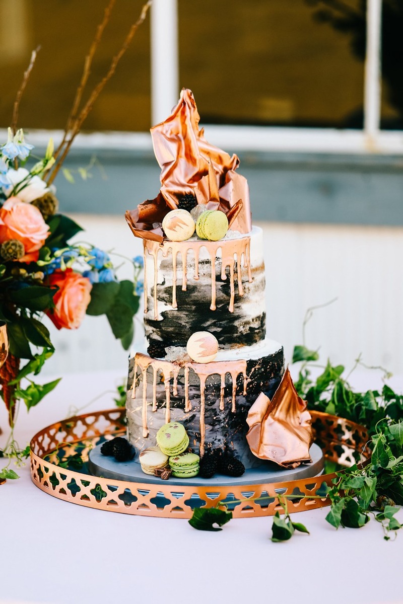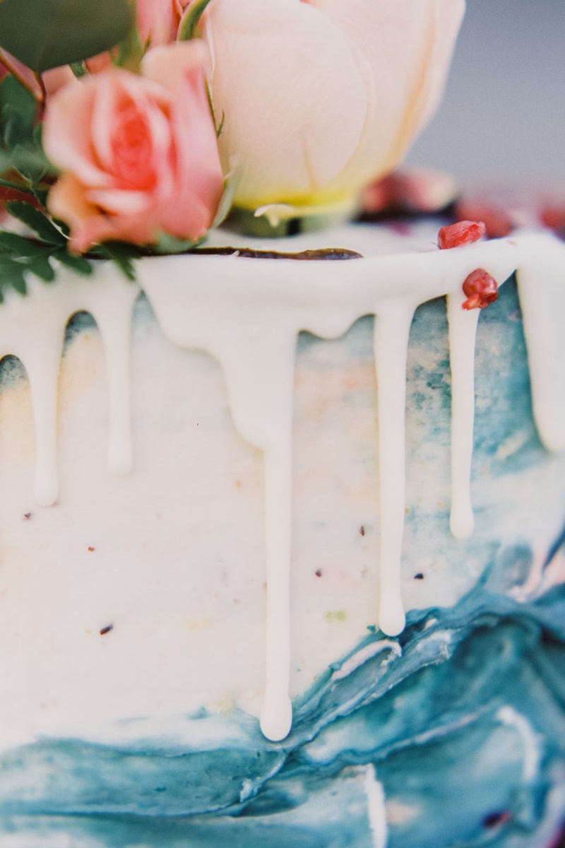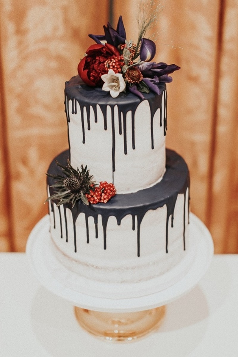 Os noivos que optarem por um bolo drip cake de chocolate branco ainda têm outra alternativa interessante. Isso porque ele pode ser tingido para criar um drip cake azul, rosa, roxo ou de qualquer outra cor que o casal desejar.