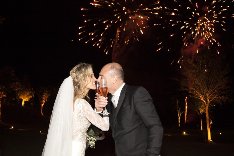 As surpresas, no entanto, estavam apenas começando. Os amigos e convidados ficariam hospedados em um hotel, já que a festa seria na casa de campo dele, em Piracaia, no interior de São Paulo. No mesmo dia, todos receberam o convite do casamento. “Além de eu estar sabendo naquela hora, os convidados receberam também o convite no quarto do hotel. Era um cartão explicando que era uma surpresa para mim e para eles! Todos seguiram para a festa sabendo que não iriam apenas para parabenizar o Marcelo, mas também participar do nosso casamento”, ela conta.