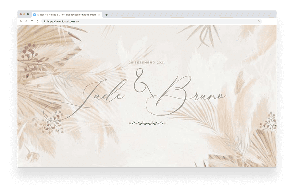 A influenciadora digital e o ator disseram sim e janeiro de 2021 em uma linda cerimônia ao ar livre que aconteceu no RJ. O casal optou por deixar o site de casamento com toda a identidade do casamento, e o resultado ficou lindo. O modelo escolhido foi o In the Woods.