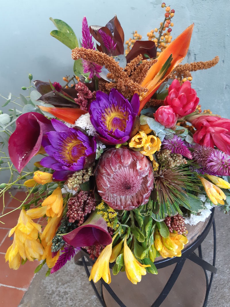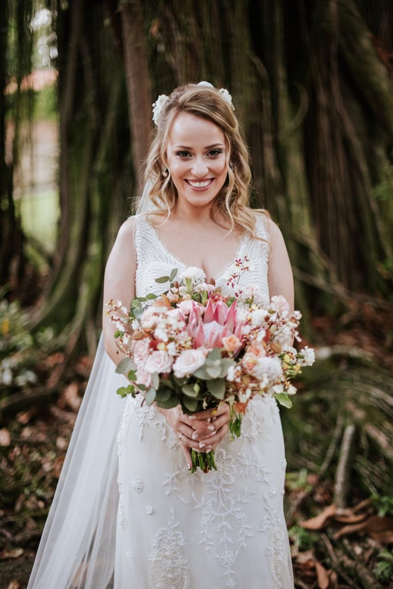 Será que a flor protea combina com qualquer estilo de casamento? Na opinião de Vanessa Ozcrovani, da empresa Vanessa Oz Flores, elas acabam aparecendo nos casamentos rústicos, boho e em lugares de campo e praia. “Não recomendo usá-la em casamentos mais clássicos, tradicionais, menos ainda nos mais delicados e muito românticos”, opina.