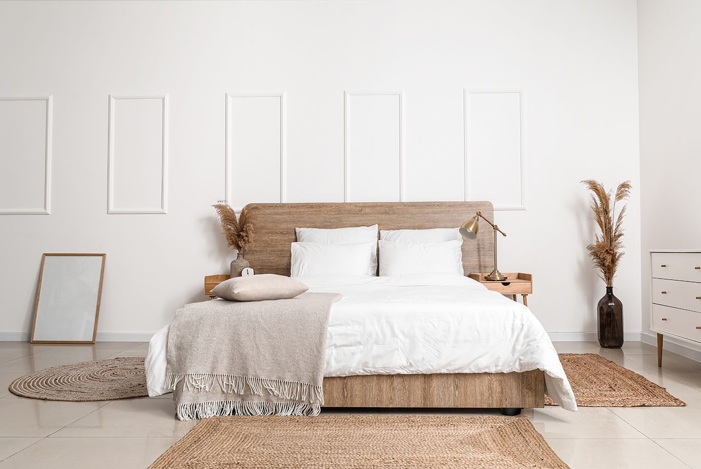 Essencial: cama box com colchão; jogo de lençóis (mínimo 3); travesseiros e cobertores; guarda-roupa.