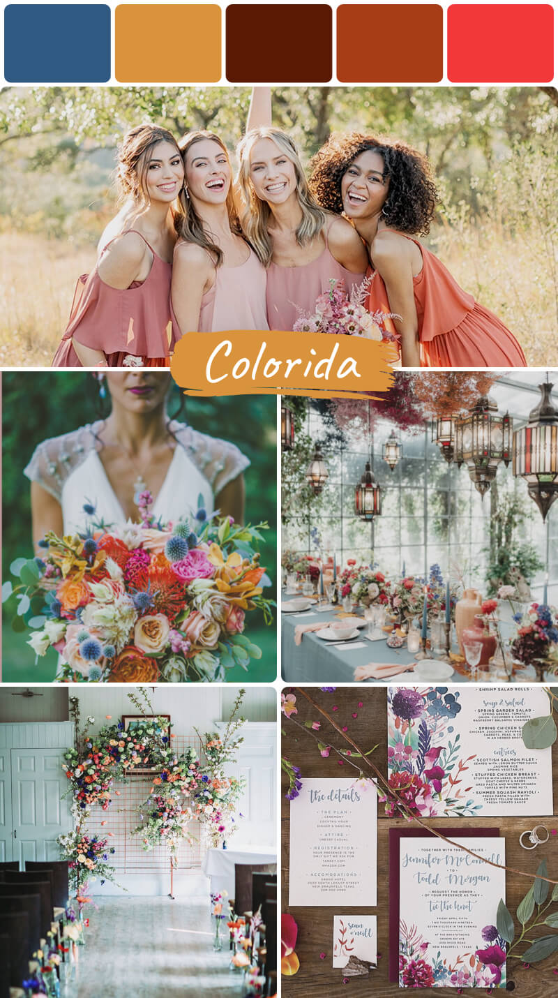 Assim como os tons pastéis e terrosos, o colorido é a grande tendência para casamentos em 2021! Para garantir que diferentes tons ornem, use um círculo cromático e identifique quais cores combinam entre si.