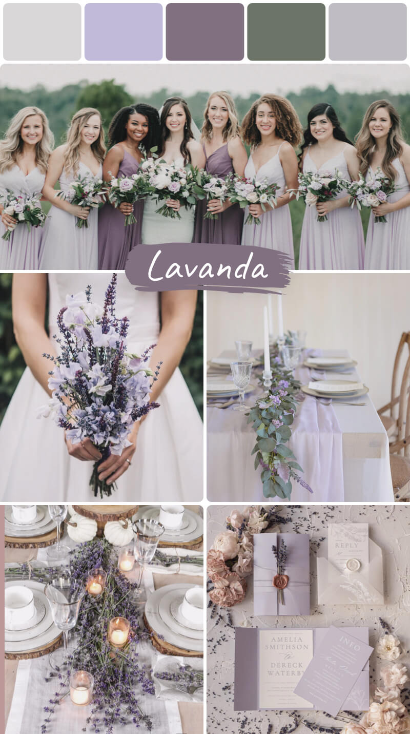 A lavanda é outro tom refinado, ideal para casamentos rústicos. Delicada e fácil de combinar, é ótima para eventos em qualquer horário do dia, sobretudo em ambientes abertos, como praias.