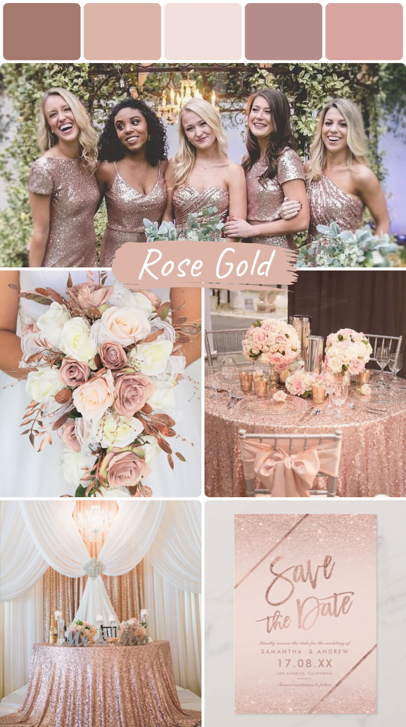 A decoração para festa de casamento rosé gold é uma ótima opção para casamentos industriais. Este tom brilhante, esbanja sofisticação e cai muito bem com cores como marsala, dourado e rosa.