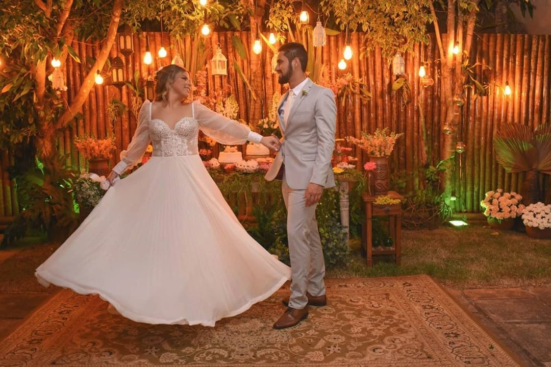 É o caso de Junia Oliveira e Breno Nicoli. O jovem casal capixaba estava de casamento marcado para agosto, mas teve que adiar a festa dos sonhos. Como já estavam de mudança para a casa nova e não queriam mais esperar, eles optaram por realizar um micro wedding, somente para a família, e transmitiram tudo ao vivo para os convidados.