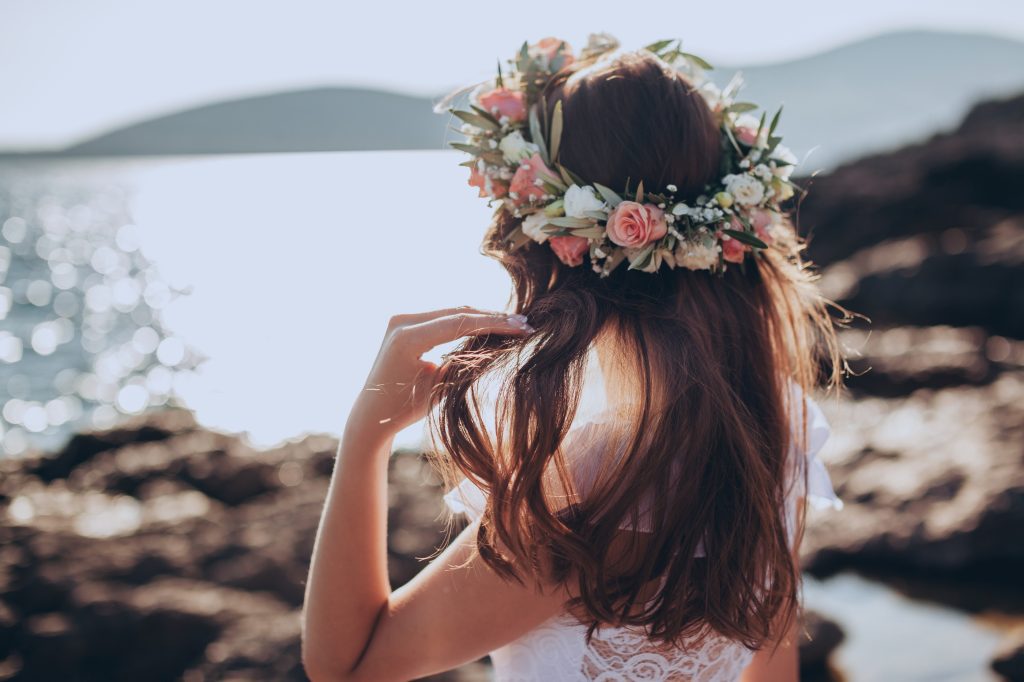 Acessórios: flores naturais, headbands, coroas e pedrarias delicadas.