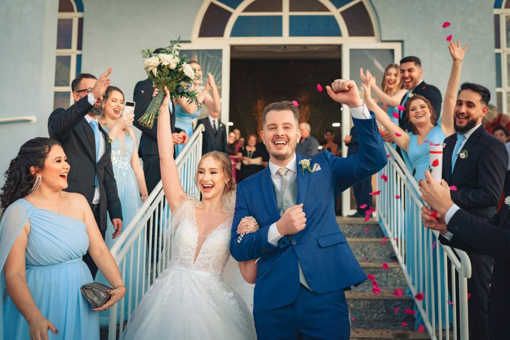 Se o noivo usar terno claro, padrinhos podem usar azul marinho ou cinza escuro.