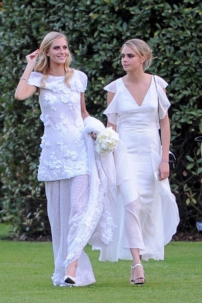 A modelo foi madrinha no casamento da sua irmã, Poppy, em maio. Ela vestiu um modelo branco Chanel bem moderno.