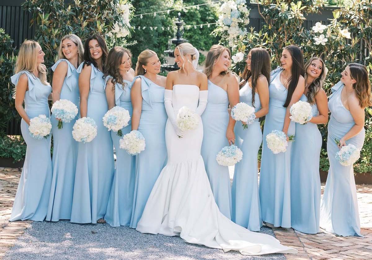 O vestido de madrinha azul serenity se tornou uma das escolhas mais elegantes nos casamentos contemporâneos. Suave, romântico e sofisticado, o tom claro cria uma estética delicada que funciona especialmente bem em cerimônias ao ar livre, casamentos intimistas e celebrações modernas.