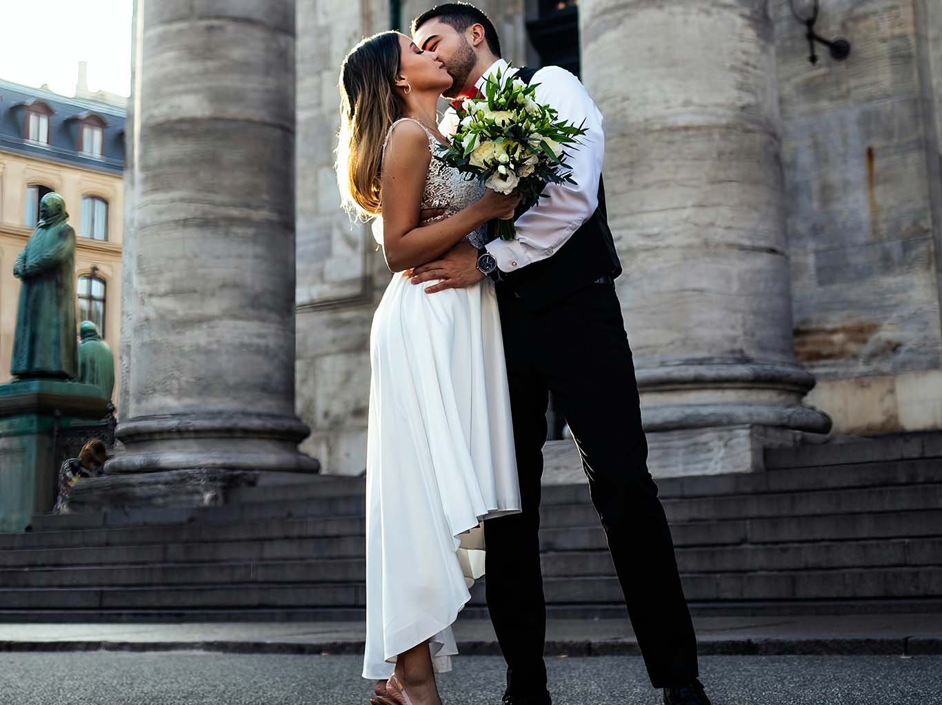 Quando o casamento civil e o religioso acontecem em datas diferentes, é a oportunidade de usar mais uma peça incrível na jornada até o altar. Para esse tipo de ocasião, existem diferentes possibilidades de looks: desde macacões cheios de estilo até terninhos super elegantes. No entanto, o vestido de noiva civil ainda é um grande clássico!