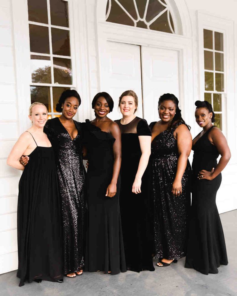 Mas, será que as madrinhas não acharam estranho? Nenhum pouco. Para a nossa felicidade, todas elas amaram a ideia e ficaram extremamente empolgadas com a cor. Preto todo mundo ama. E eu deixei a escolha das amarrações livre e, cada uma fará conforme achar melhor. Esse foi um dos motivos para escolhermos esse vestido. Todo mundo feliz, elegante e sem se sentir desconfortável.